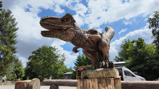 Wir haben für unsere Wanderausstellung zum Schutz der Bienen einen Holz-Dinosaurier geschnitzt. Das wirkt auf den ersten Blick ungewöhnlich – schließlich ist diese Spezies längst ausgestorben. Doch genau dieses Bild dient als starke Metapher: Während unser Dino nur noch im Holz existiert, sind unsere Bestäuber real und dringend darauf angewiesen, dass wir handeln.